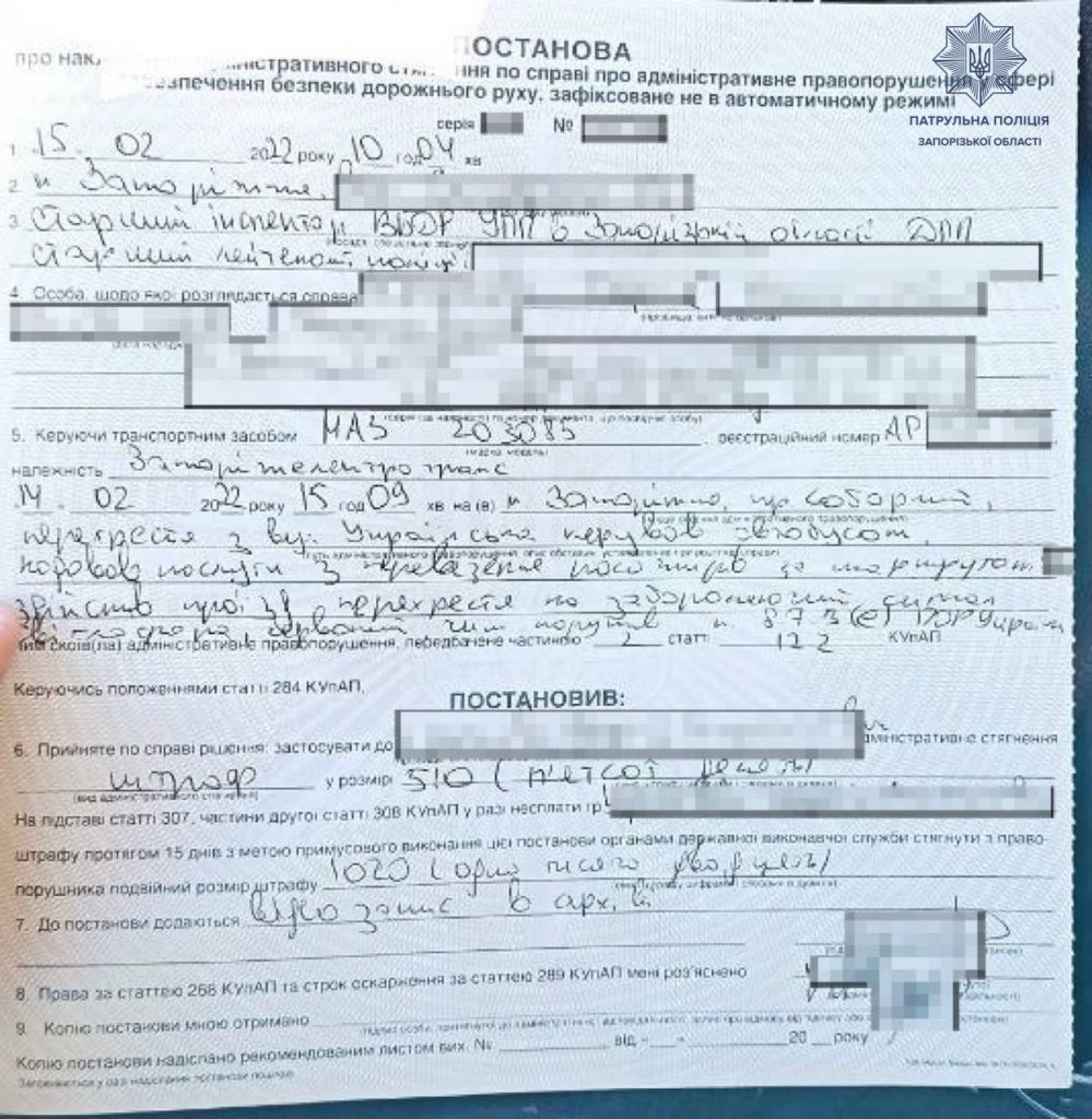 Патрульные обработали видеоматериал и привлекли к административной ответственности водителя общественного транспорта. Полицейские вынесли на водителя постановление по ч. 2 ст. 122 КУоАП. Санкция статьи предусматривает штраф – 510 гривен.