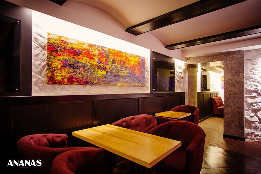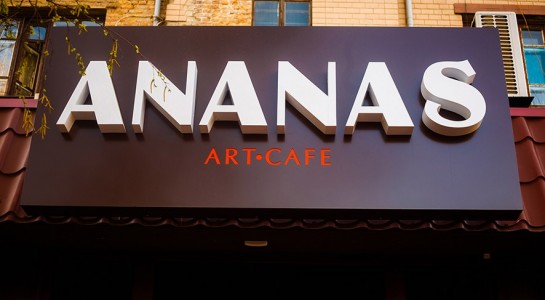 Арт-кафе «Ananas» расположено на первом этаже жилого дома по ул. Моторостроителей, 11 в Шевченковском районе города Запорожье.