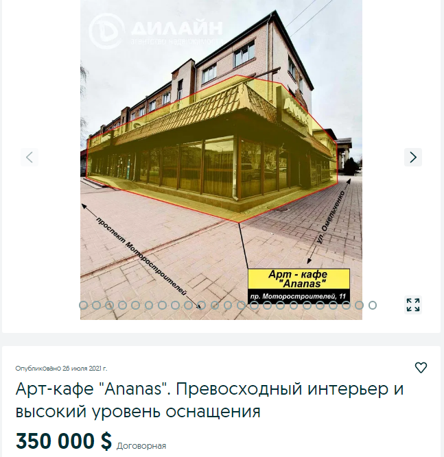 Как указывает автор в объявлении, это бизнес под ключ. Помещение арт-кафе «Ananas» с полным комплектом технологического оборудования, оригинальной мебели, специальной техники и необходимого инвентаря.