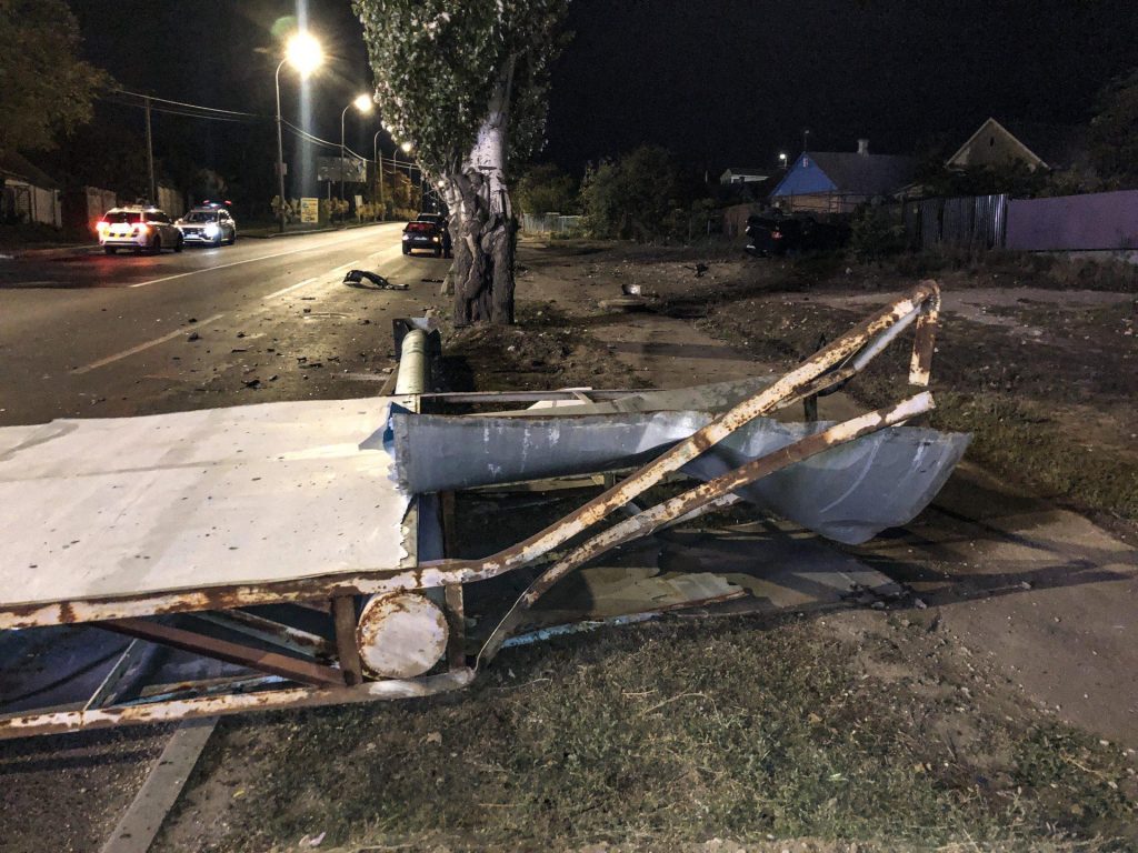 Сегодня ночью в Бердянске автомобиль снес билборд, который стоял на обочине.