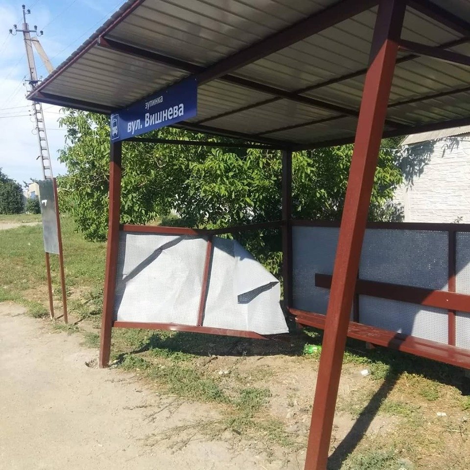 В сети появились фотографии из Мелитополя, на которых повреждена остановка общественного транспорта.