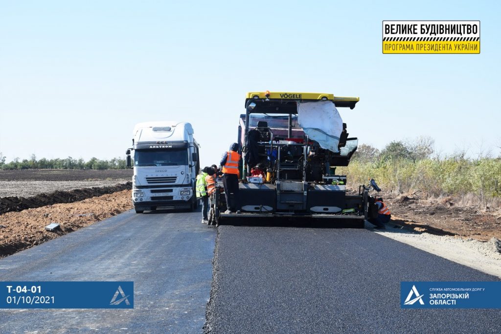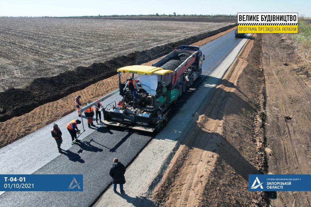 В Запорожской области на трассе государственного значения укладывают асфальт (ФОТО)