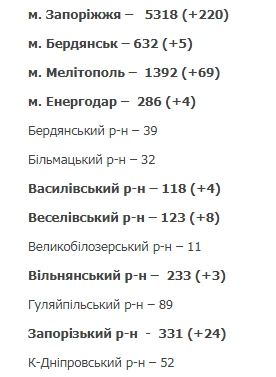 За последние сутки обследовано 1777 человек, в т.ч. 1746- на базе ГУ «Запорожский ОЛЦ МЗ Украины», выявлено 427 инфицированных.
