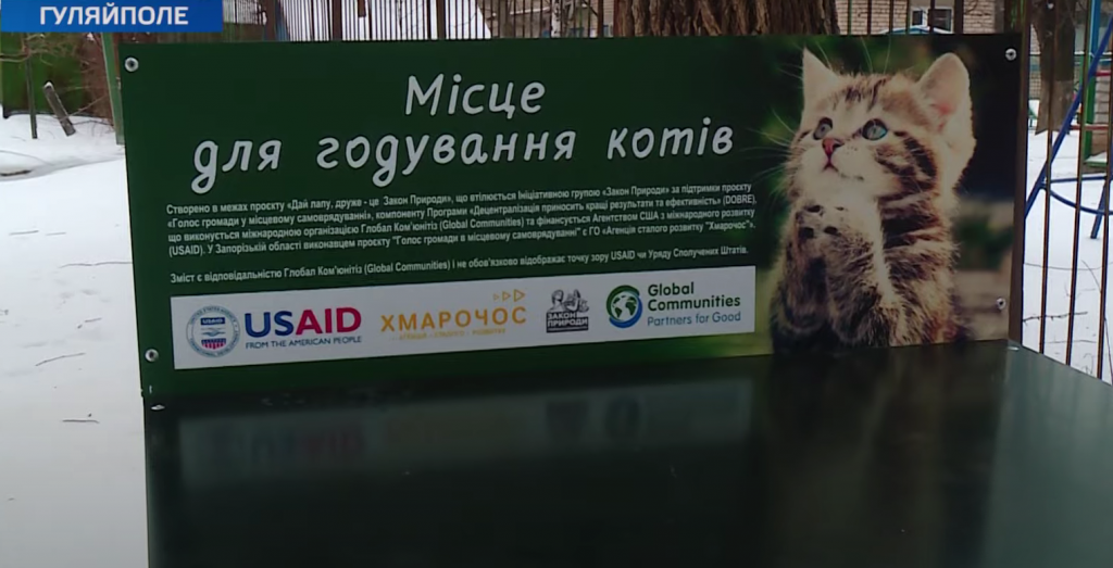 В Гуляйполе жители одной из многоэтажек прямо во дворе установили дом для котов.