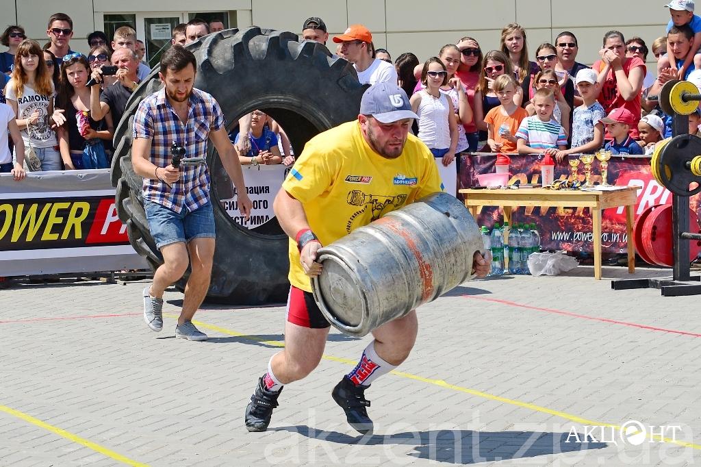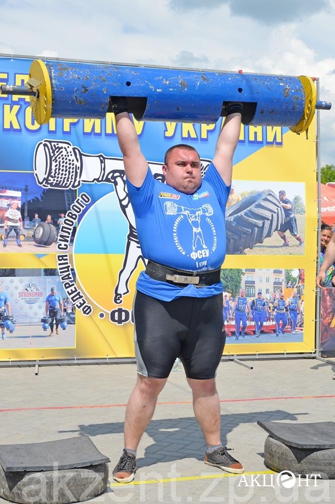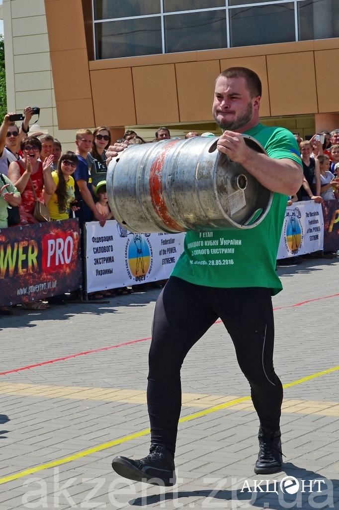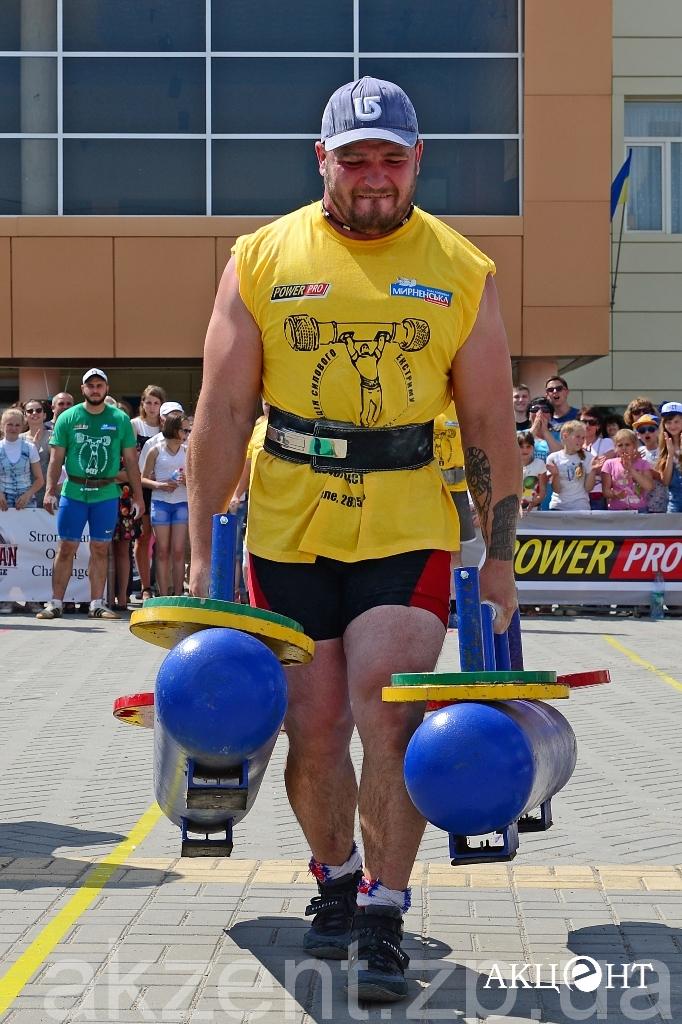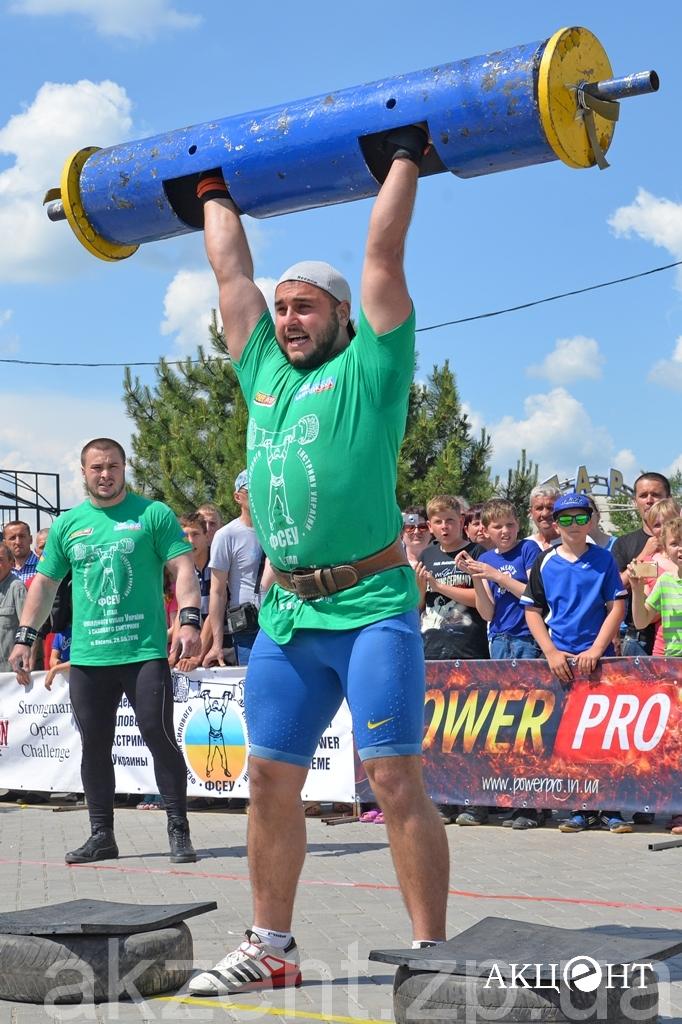 Первое упражнение – богатырская эстафета, включало в себя переноску «колодца» весом в 300 кг. на расстояние 15 метров, переноску 100-килограмовой бочки на 30 метров и кантование гигантской покрышки весом в 360 кг. на 5 оборотов. Запорожская команда уверенно выполнила все три упражнения, показав лучный результат – 61,7 сек. Все шансы оказаться первыми были у команды луганской области. Однако падение Леона Мирошника при переноске бочки и падение Сергея Харченко при выполнении последнего оборота гигантской покрышки отняли у ребят драгоценные секунды. В итоге команда показала второй результат – 69,7 сек. Спортсменам из харьковской области на выполнение эстафеты потребовались 71,1 секунды.