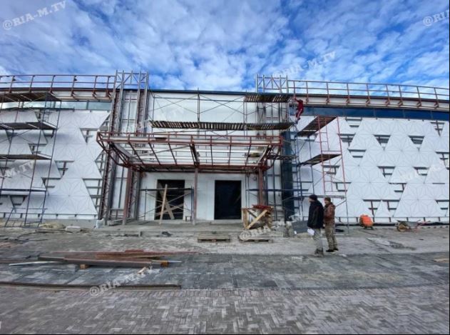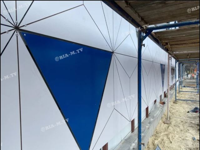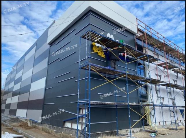 На этих выходных в Мелитополе уже обшивали фасад строящейся ледовой арены по пр. Б. Хмельницкого, 46/9.