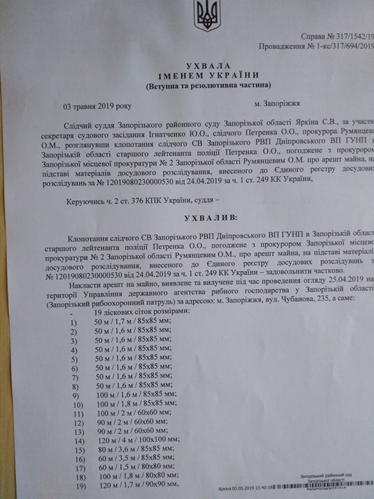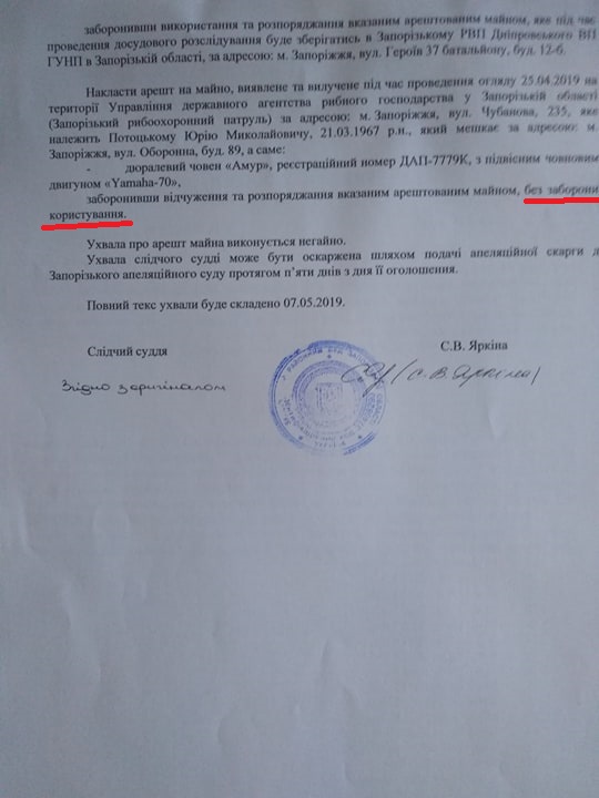 Отметим, в пятницу в Запорожском районном суде прошло судебное заседание, по результатам которого суд оставил за Потоцким право пользования его имуществом (лодкой и навесным двигателем), однако запретил его отчуждать. В полиции были согласны отдать владельцу его лодку, однако перед этим ее на лафете увезли все те же сотрудники рыбпатруля. Потоцкий назвал это кражей.