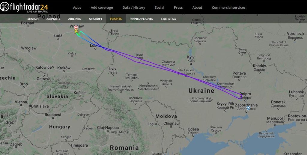 На авиационном онлайн-сервисе Flighradar24 видно, как самолет, который должен был сесть в 17:25, покружил над Запорожьем и вернулся обратно в Варшаву. Сообщает Первый Запорожский.
