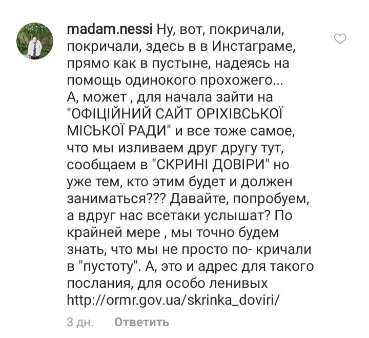 Так, улица Шевченко, что находится в 10 минутах ходьбы от центра города, оказалась покрыта огромными ямами, видя которые, некоторые водители не решаются ехать по ним дальше. Как говорят местные жители, проблему обещали исправить еще давно, но уже который год никто даже не пытается начинать этого делать.