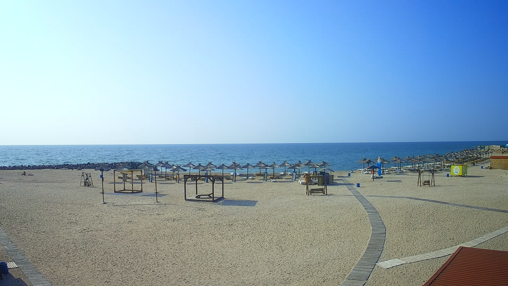 Ветер утром сохраняется, но больших волн нет. Людей достаточно много, как и желающих искупаться.