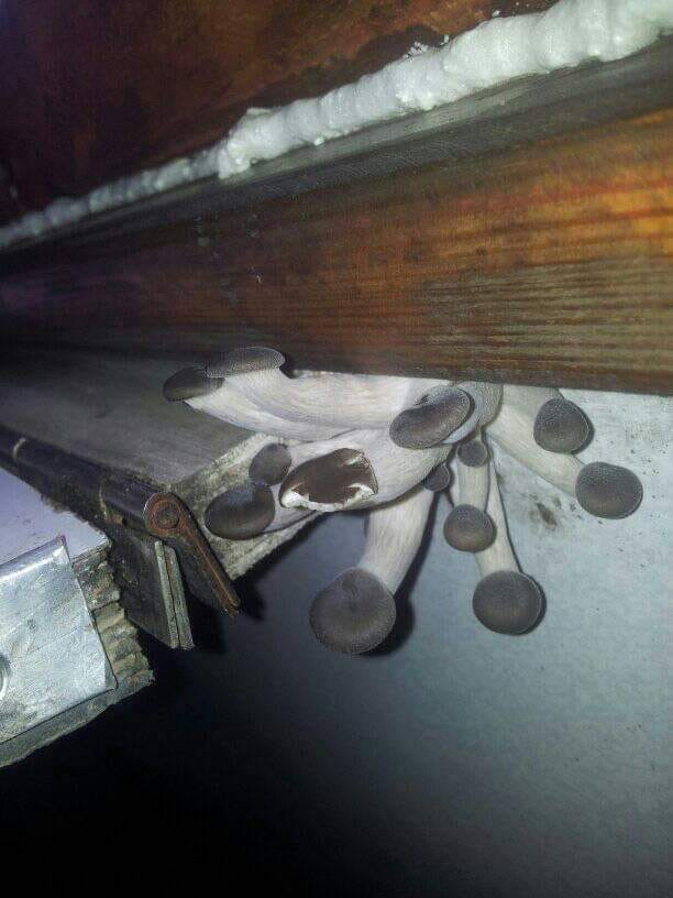 На фото видно, что грибы уже успели довольно сильно прорости из-под оконной рамы вагона, именно там обычно больше всего сырости. В комментариях люди пишут, что «это ниже дна» и шутят «так вот на чем они зарабатывают».