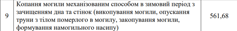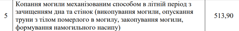 К примеру, стоимость копания могилы механизированным способом в летний период с зачисткой дна и стенок составит 513,90 грн (было 355,67 грн).