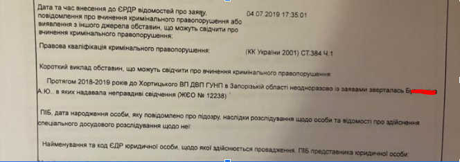После вскрытия данных фактов со стороны Анастасии Б, на нее было открыто уголовное производство по ст. 383,384 КК Украины. Факт дачи заведомо ложных показаний стал очевидным.