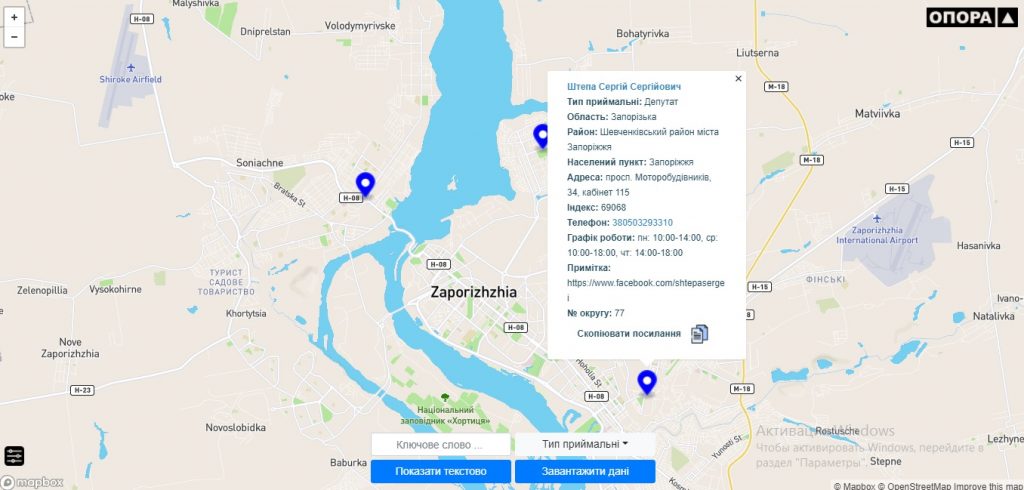 Громадська організація «Опора» розробила інтерактивну карту громадських приймалень мажоритарних депутатів, а також простежила виділення державних субвенцій по округам.