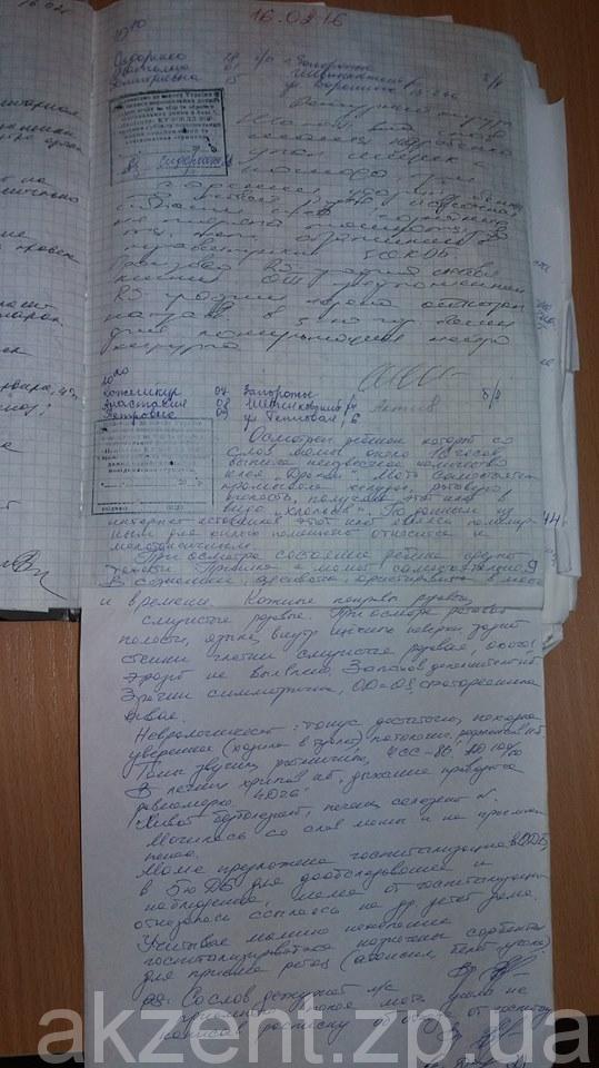 В этот же день я доставила дочь в Запорожскую областную детскую больницу где врач-реаниматолог Василенко А.Н. сказал «что нет ничего страшного, кто из нас не ел клей», назначил адсорбенты и … отправил нас домой. А затем совместно с дежурными врачами той смены ПОДКЛЕИЛИ в Журнале передачи смен врачей страницу с якобы «моим отказом в госпитализации» пытаясь обвинить в отказе от госпитализации. И сделали это врачи, которые виновны в смерти ребенка!