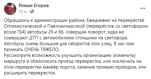 По словам запорожца, габариты автобуса мешают на проезжей части другим автомобилям на одном из перекретсков, едва не создавая аварийные ситуации. Мужчина просит руководство района принять нужные меры.