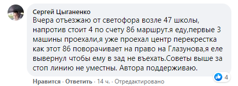 Пользователи сети по-разному отнеслись к предложению Романа. Некоторые утверждали, что правила не соблюдают водители других транспортных средств: останавливаются за стоп-линиями. Другая же часть запорожцев написала, что стоп-линий там нет и поддержала автора поста. Другие водители также пожаловались на опасные ситуации.