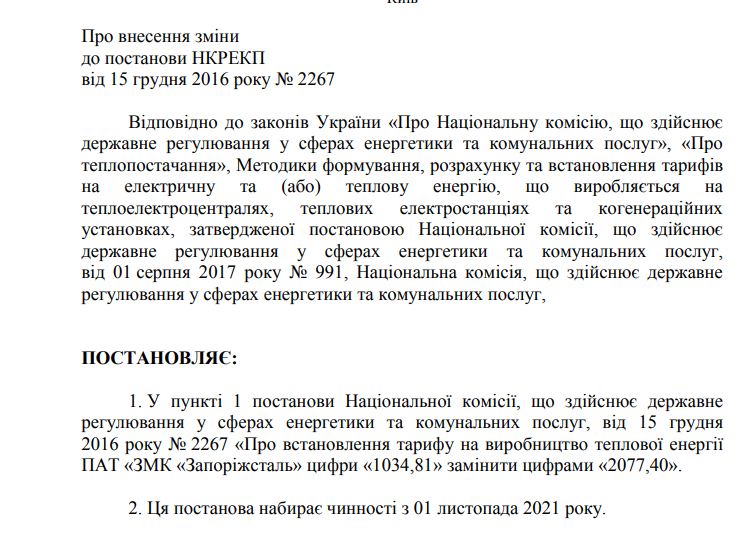 Так, 29 сентября состоится заседание, на котором рассмотрят вопрос повышения тарифов на производство тепловой энергии запорожского предприятия и многих других предприятий по Украине.