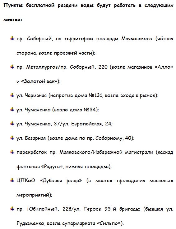 С 15 июля по 31 августа с 11:00 до 16:00 одна из торговых марок проведет в Запорожье бесплатную раздачу очищенной, охлажденной питьевой воды.