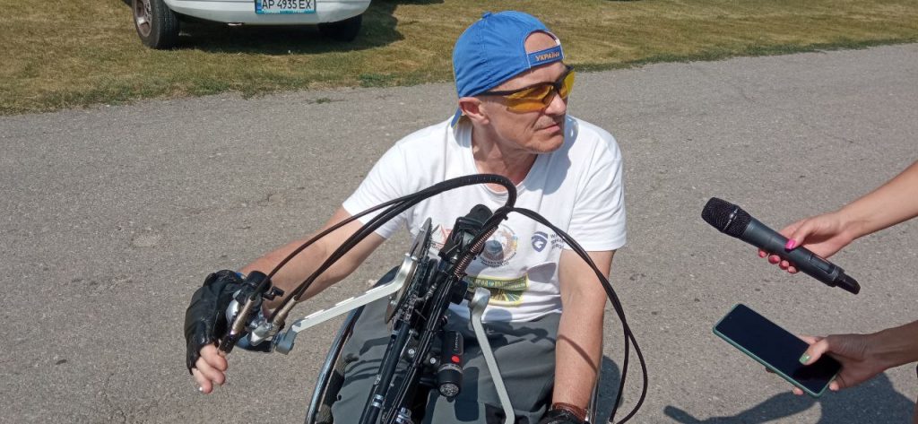 Инициатор пробега ветеран АТО Сергей Салий, который передвигается на хендбпйке из-за травмы, полученной на войне. Пробег стартовал в Ужгороде 9 августа и проходит по городам Львов, Ровно, Житомир, Киев, Полтава, Днепр, Запорожье, Мариуполь.