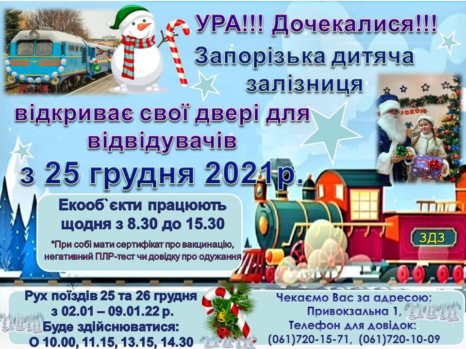 Завтра, 25 декабря, в Запорожье возобновляет свою работу Детская железная дорога.