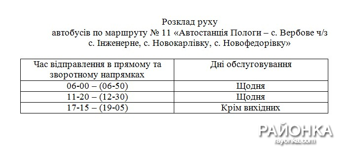 Исполнительный комитет Пологовского городского совета сообщил, что еще в декабре перевозчик прекратил обслуживать пассажиров по маршруту №11 «Автостанция Пологи – с. Ивовое ч/з с. Инженерное, с. Новокарловку, с. Новофедоровку».